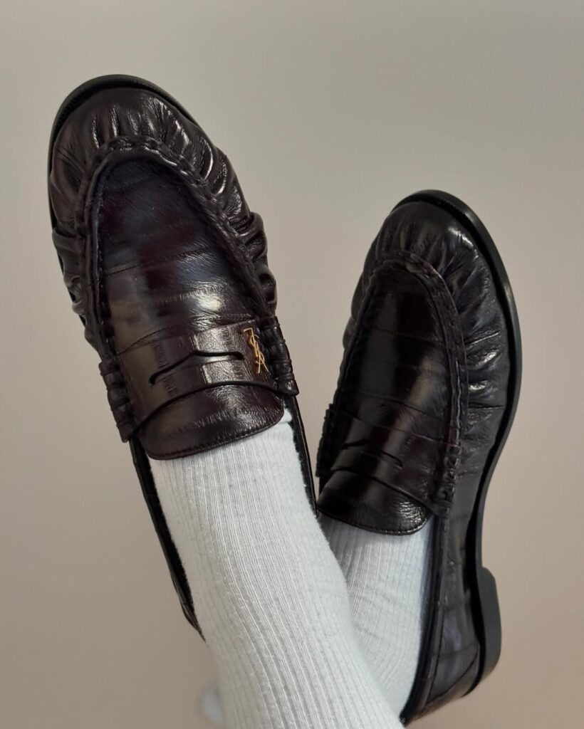 Мокасины с завитушками от Saint Laurent — это модная обувь сезона осень-зима 2025-2026.